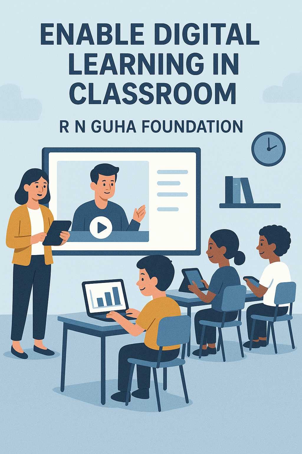 eVidya Gram is an initiative by R N Guha Foundation aimed at transforming rural education through the power of digital learning. The program seeks to bridge the digital divide in village schools by equipping them with smart classrooms, digital content, teacher training, and interactive learning tools.